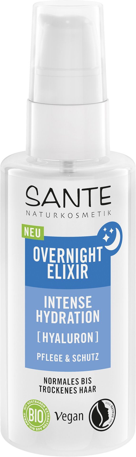 Sante Overnight Elixir intensywnie nawilża włosy i chroni włosy, nie obciążając ich. Ma kojący zapach lawendy i miodu. Wysoce skuteczna formuła pielęgnacyjna z kwasem hialuronowym i organicznym aloesem otula włókno włosa, wygładzając jego powierzchnię i redukując łamliwość i puszenie się. Do włosów normalnych i suchych.