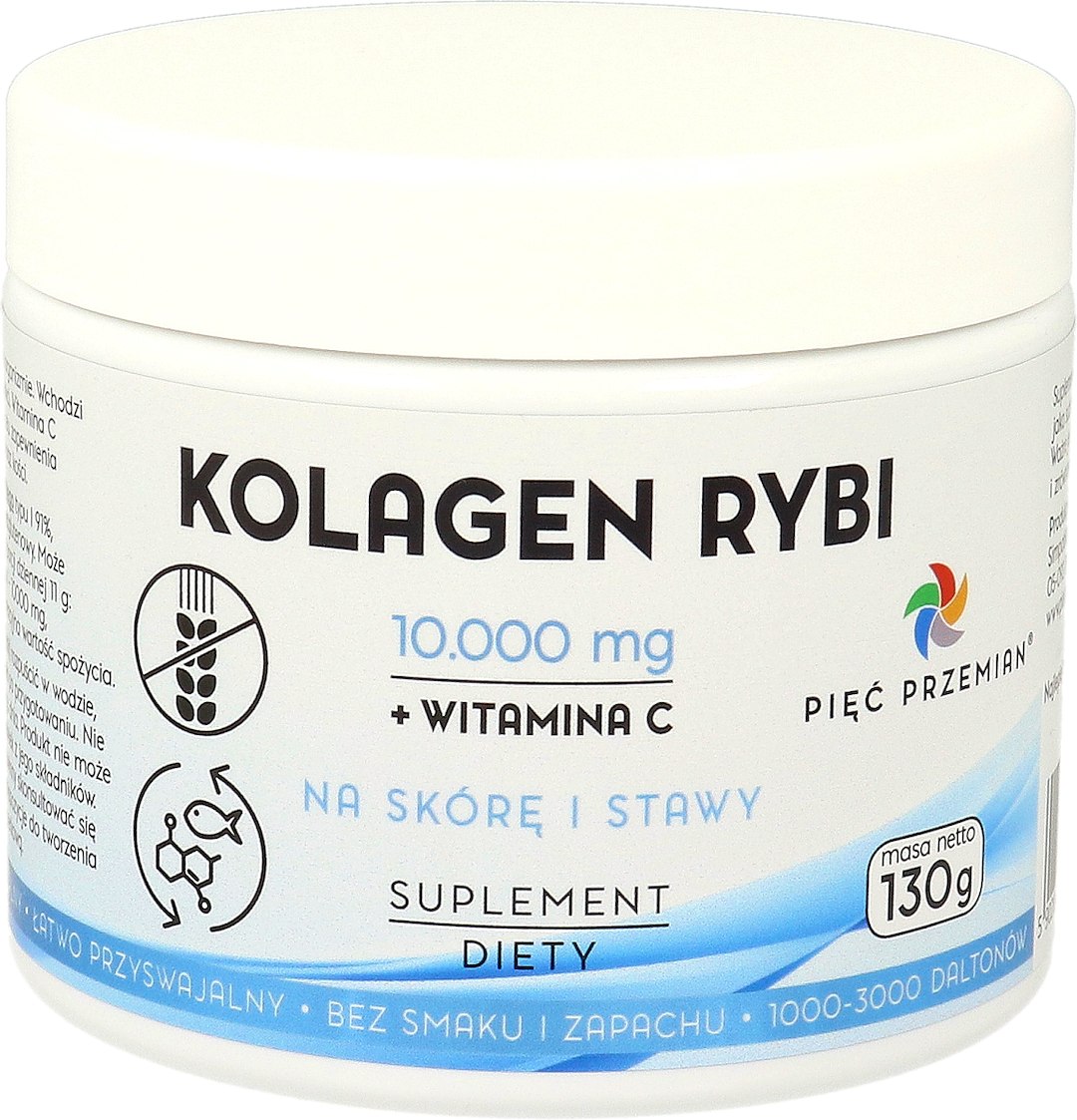 Kolagen rybi + witamina c w proszku bezglutenowy 130 g - PIĘĆ PRZEMIAN