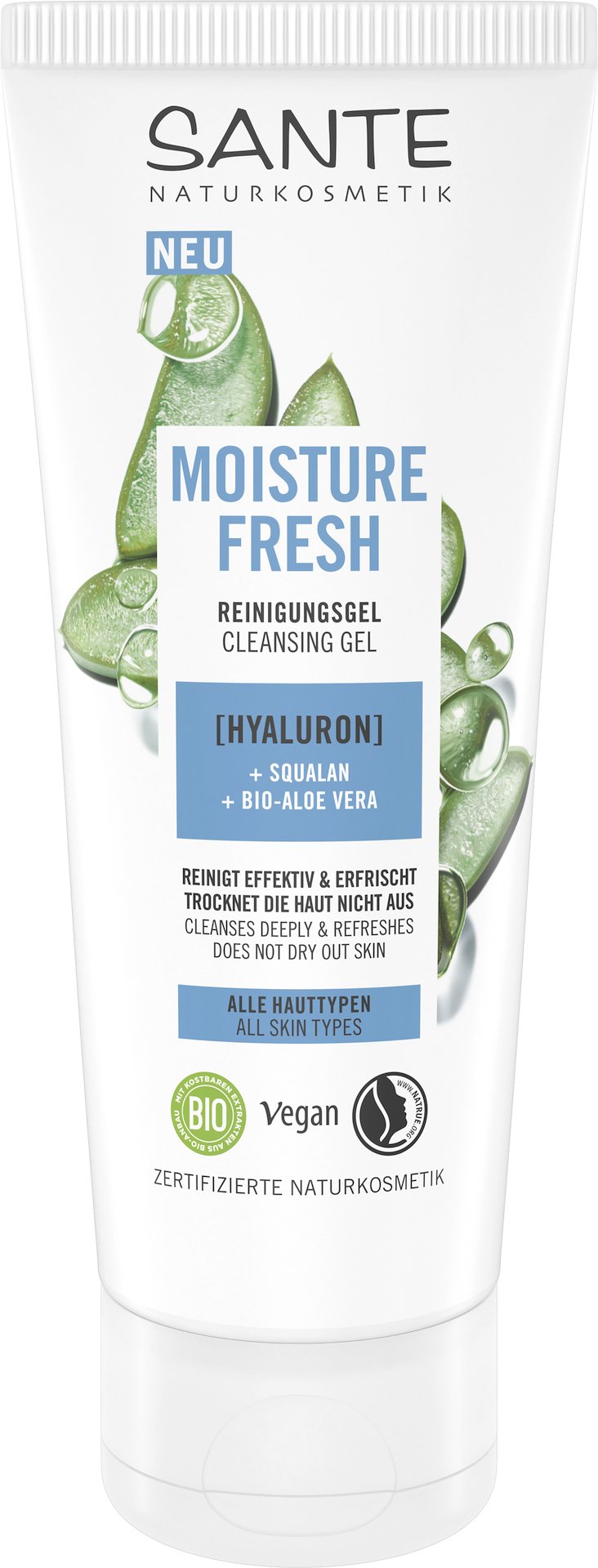 Żel oczyszczający do mycia twarzy nawilżający z kwasem hialuronowym, skwalanem i aloesem eco 100 ml - SANTE